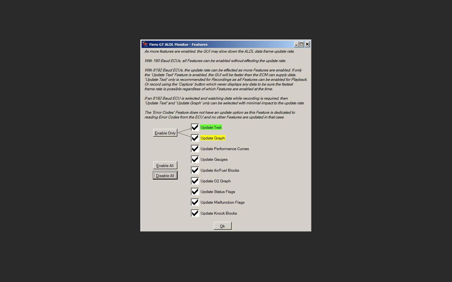 Fiero GT ALDL Diagnostic Tool - Feature Selection
